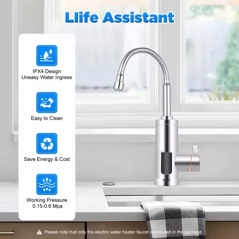 Montaža je veoma jednostavna. Sve što vam je potrebno je standardni otvor na sudoperi ili lavabou, dovod hladne vode i utičnica u blizini. VAŽNA NAPOMENA: Pre prvog uključivanja u struju, OBAVEZNO pustite hladnu vodu da poteče kroz slavinu par sekundi kako bi se napunio grejač. Uključivanje „na suvo“ može dovesti do pregorevanja grejača.