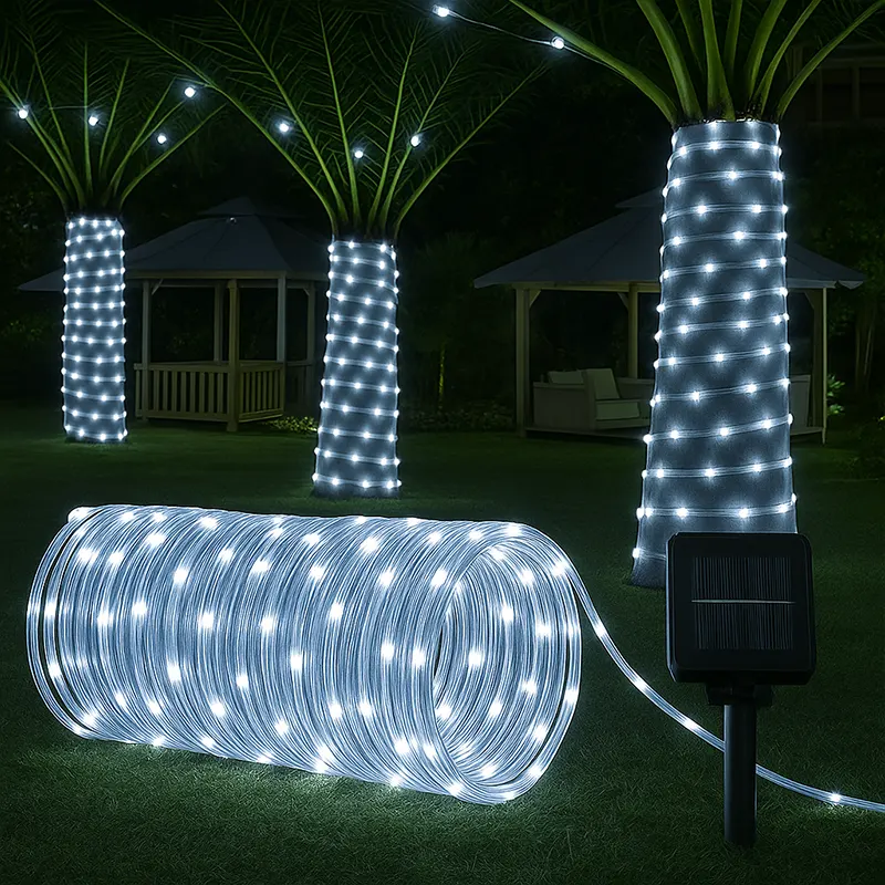 Savitljivo PVC crevo omogućava lako oblikovanje i postavljanje lampica duž terasa, ograda, zidova i prozora. Montaža ne zahteva alat, a elegantan dizajn se lako uklapa u bilo koji ambijent, bilo da je u pitanju bašta ili unutrašnji prostor.