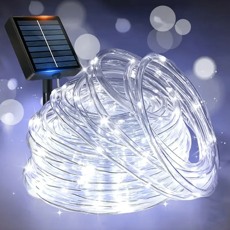 Solarne sijalice bele u crevu 20m – jednostavna elegancija i svetlosna harmonija. Solarne sijalice bele u crevu 20m donose eleganciju, mir i čistoću u svaki prostor. Njihova bela svetlost pruža savršenu ravnotežu između topline i svežine, čineći ih idealnim rešenjem za dekoraciju terasa, staza, ograda, prozora i dvorišta. Ove lampice stvaraju prijatan ambijent koji unosi spokoj i minimalizam u vaš dom ili baštu.
