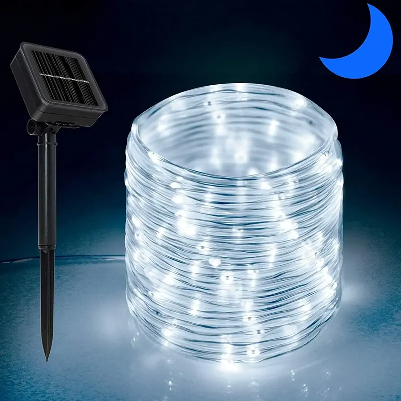 Solarne sijalice bele u crevu 20m koriste sunčevu energiju, pa ne troše struju. LED tehnologija obezbeđuje minimalnu potrošnju i dug radni vek uz konstantan svetlosni učinak.